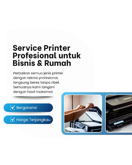 Komitmen kami adalah memberikan pelayanan yang jujur, cepat, dan transparan, sehingga printer Anda kembali bekerja optimal tanpa mengganggu aktivitas harian. Jika Anda membutuhkan solusi printer yang praktis dan terpercaya, kami siap membantu kapan pun Anda membutuhkan.